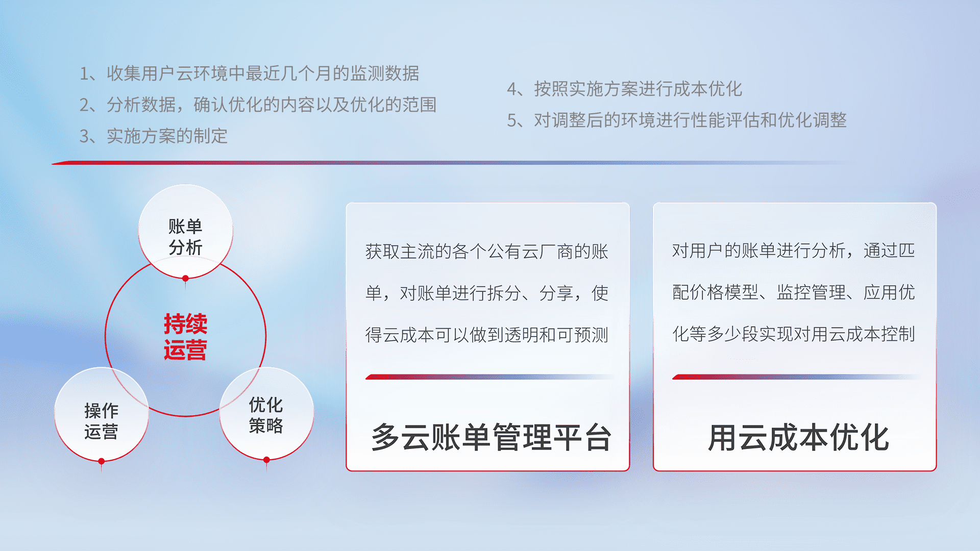 监控业务系统资源开销,,,,对资源的消耗精确计量,,,,实现费用的透明化管理,,不断提升资源使用率,,,调整资源购买方式,,,降低资源费用成本,,用云成本可预测、、、用云费用可优化,,云资源配额有据可依。。